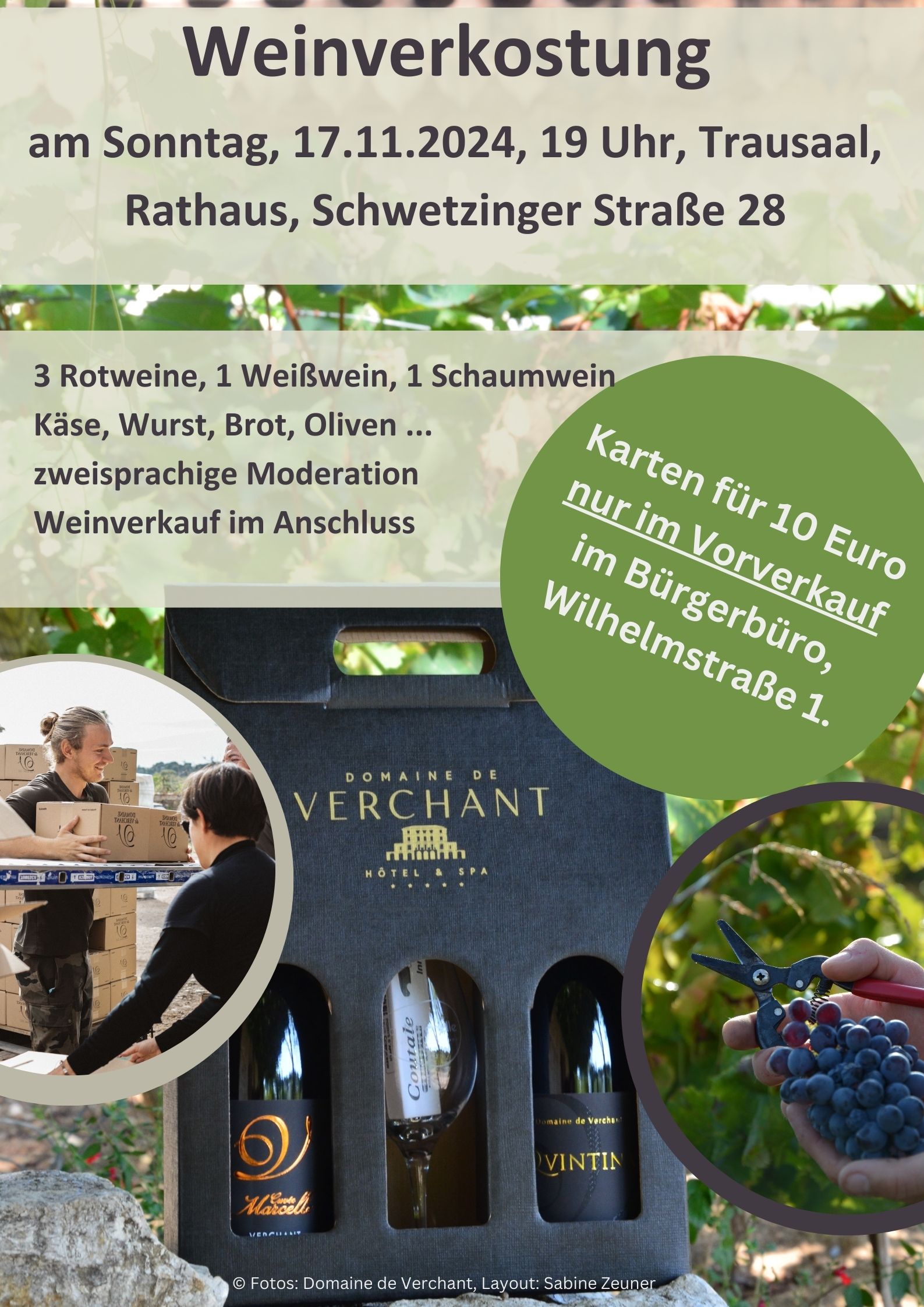 Am Sonntag, 17. November 2024, 19 Uhr, lädt die Gemeinde in den Trausaal, „die gute Stube“ des Rathauses, Schwetzinger Straße 28, zur exklusiven Weinverkostung des renommierten französischen Weinguts ein. Vorgestellt wird mit fünf Weinen ein repräsentativer Querschnitt der besten Weine des Domaine de Verchant. Sorgfältig für dieses Event ausgewählt wurden drei Rotweine, ein Weißwein und ein Schaumwein. Lust auf ein außerordentliches Geschmackserlebnis? Der Platz im Trausaal ist begrenzt, deshalb bitte frühzeitig Karten sichern, die zum Preis von 10 Euro ab sofort im Bürgerbüro Plankstadt, Wilhelmstraße 1, angeboten werden. Die Verkostung wird moderiert, übersetzt und bietet die Möglichkeit, in die Besonderheiten der französischen Weinkunst einzutauchen und die Geschichten hinter den edlen Tropfen zu erfahren. Ein Abend voller Genuss, Kultur und Geselligkeit ist damit garantiert. Alle vorgestellten Weine können direkt gekauft werden.