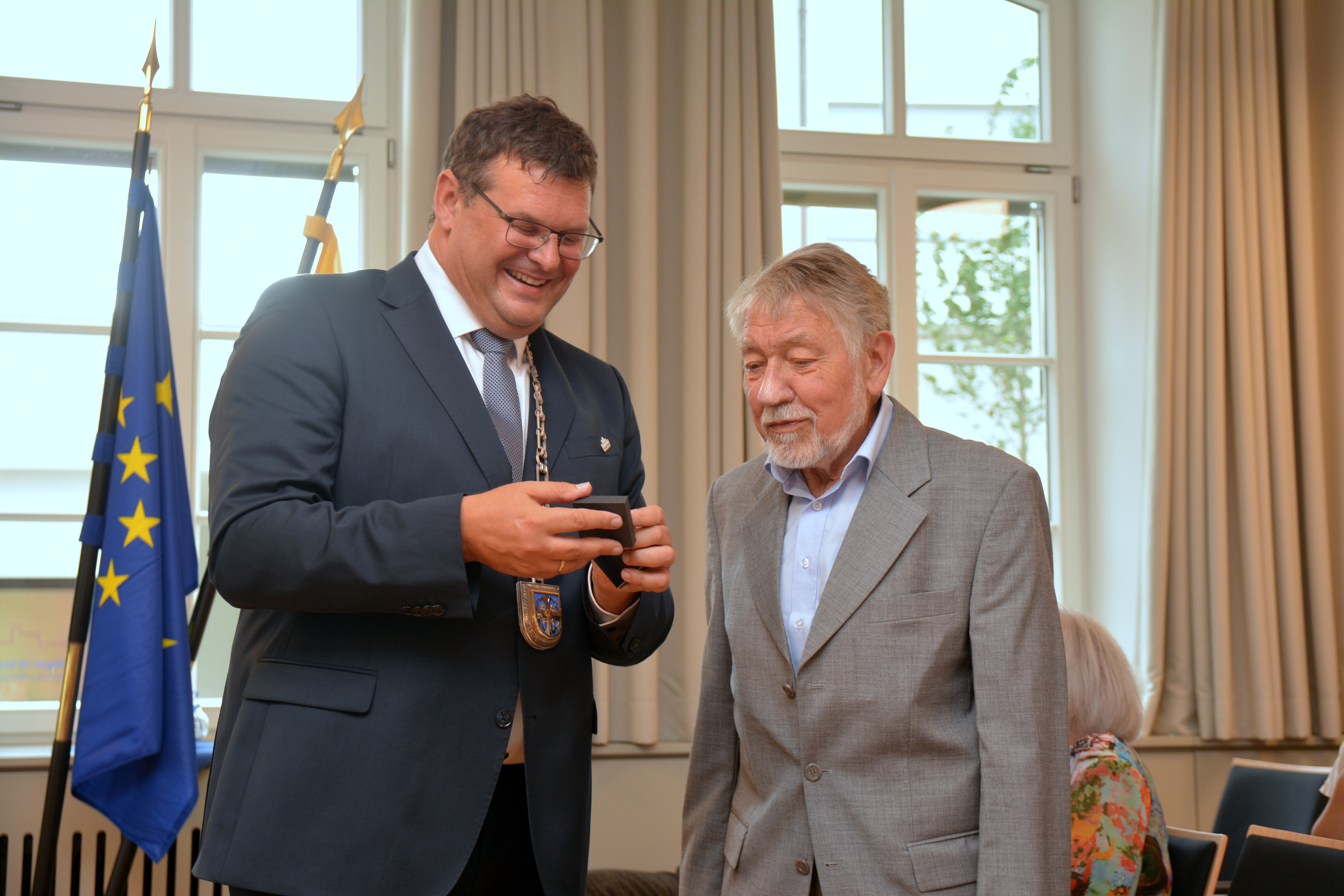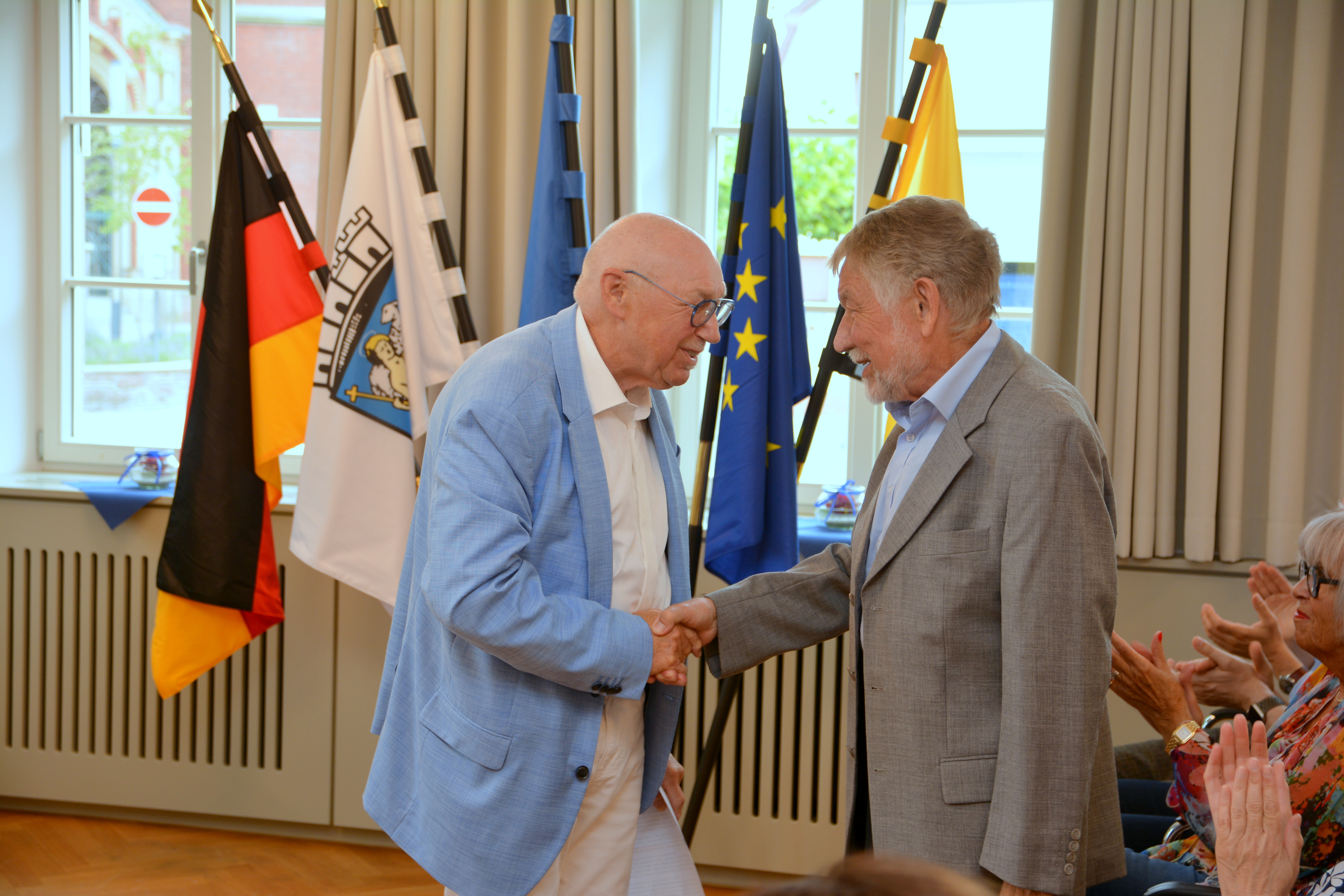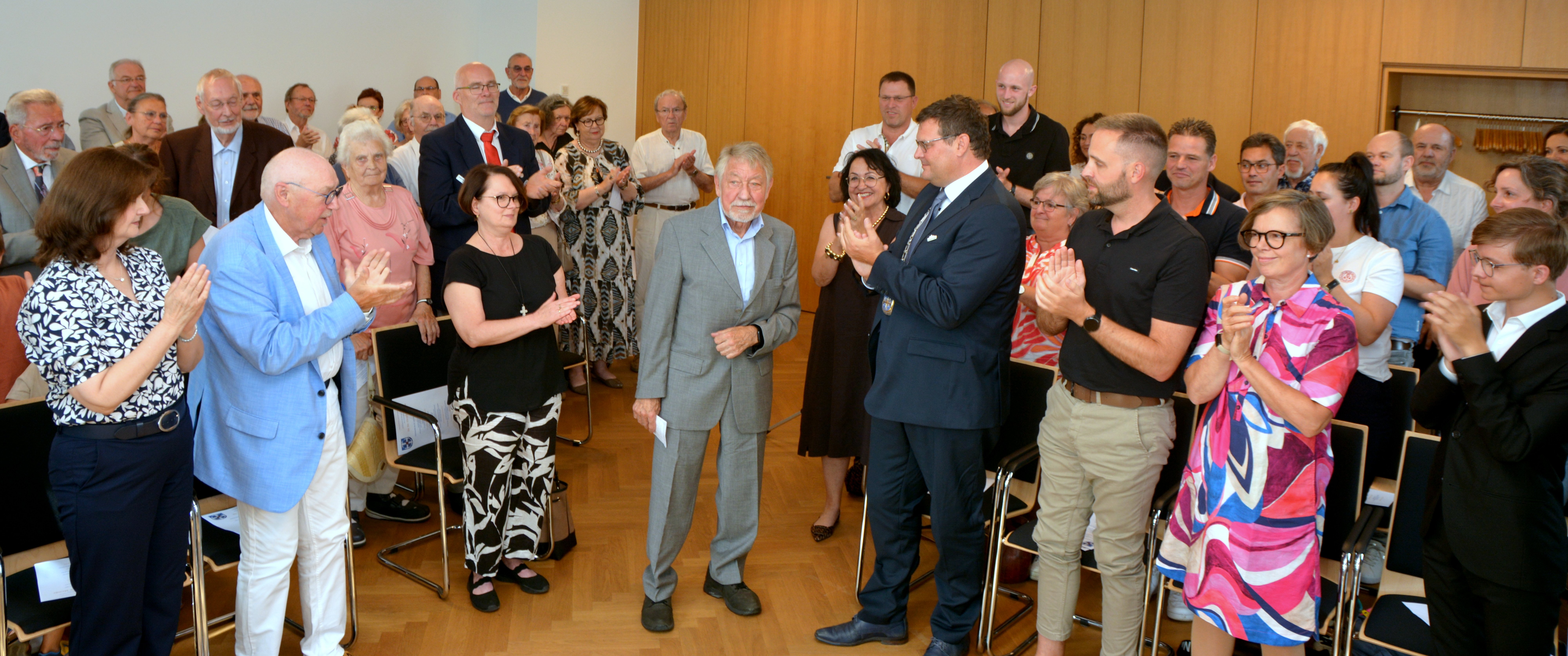 „Sie waren und sind das moralische Gewissen dieses Rates.“ Zitate von Seneca, dem römischen Philosophen und Dramatiker, waren der rote Faden durch die Laudatio des Verwaltungsoberhaupts. Seneca versinnbildliche Unabhängigkeit im Denken, Verantwortung gegenüber der Gemeinschaft und Respekt vor der Natur – wiederzufinden in der Haltung des neuen Ehrenbürgers. Der heute 82-Jährige beeindrucke mit einem großen Wissen in der Bauleitplanung.