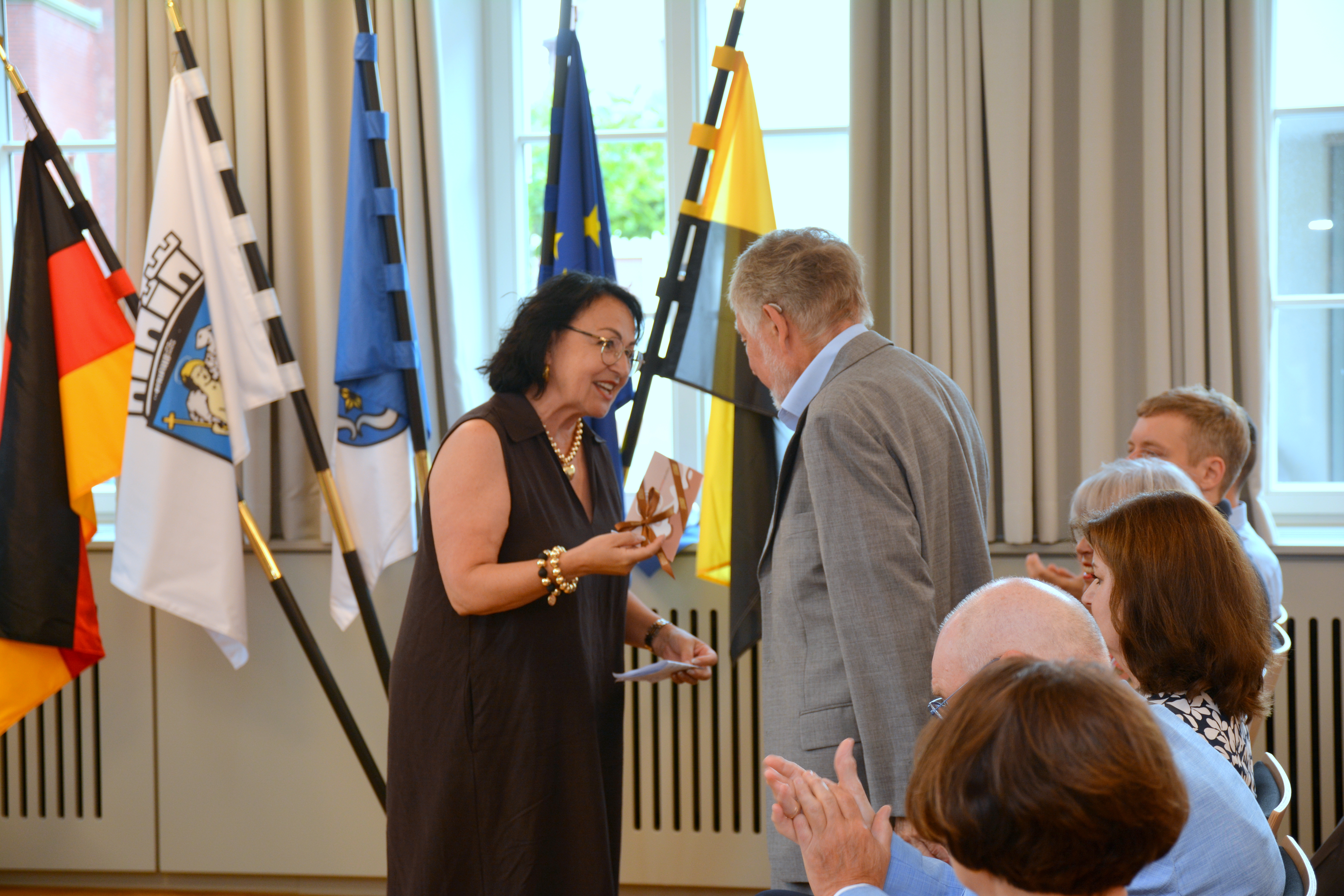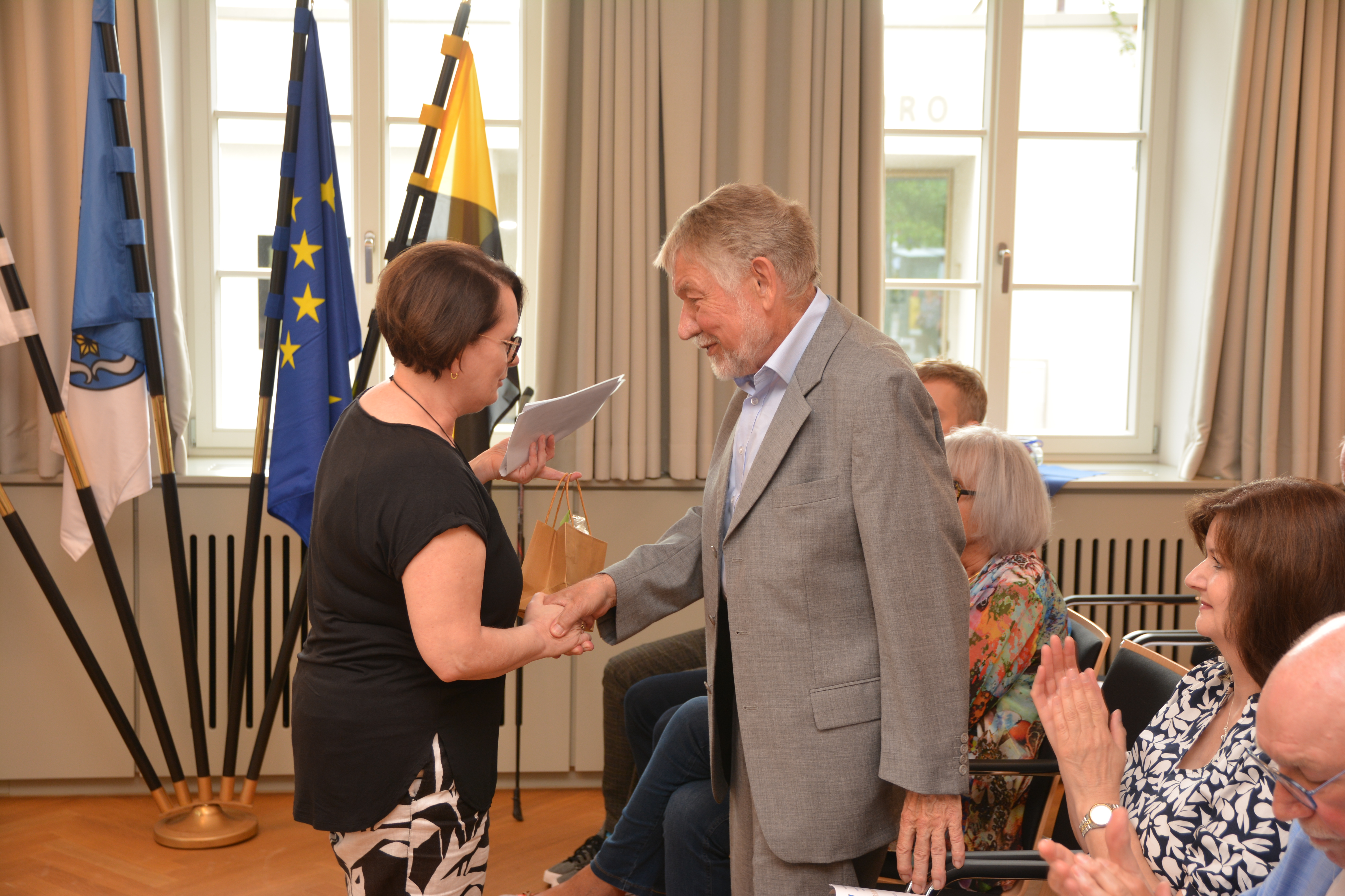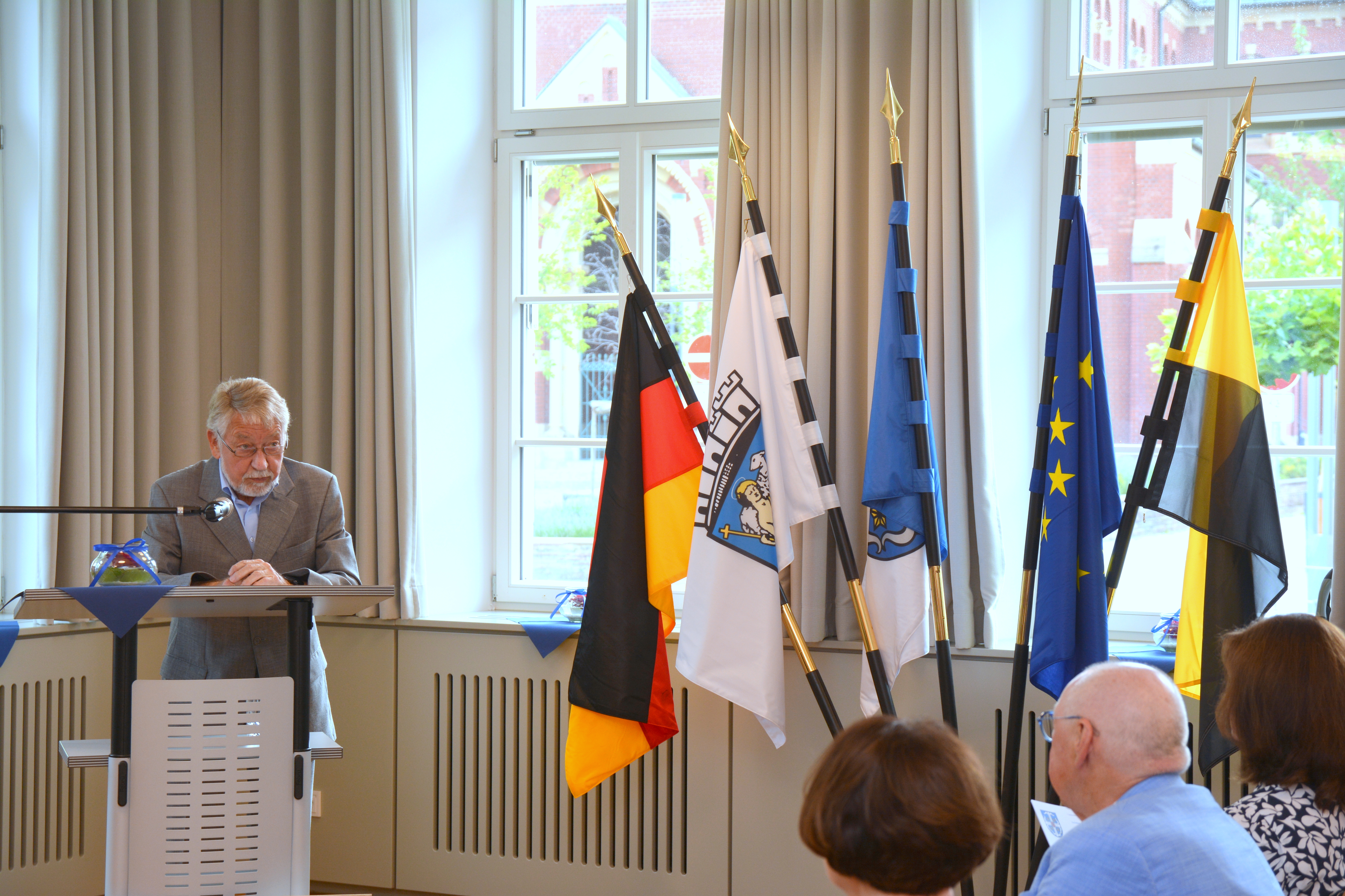 „Sie waren und sind das moralische Gewissen dieses Rates.“ Zitate von Seneca, dem römischen Philosophen und Dramatiker, waren der rote Faden durch die Laudatio des Verwaltungsoberhaupts. Seneca versinnbildliche Unabhängigkeit im Denken, Verantwortung gegenüber der Gemeinschaft und Respekt vor der Natur – wiederzufinden in der Haltung des neuen Ehrenbürgers. Der heute 82-Jährige beeindrucke mit einem großen Wissen in der Bauleitplanung.
