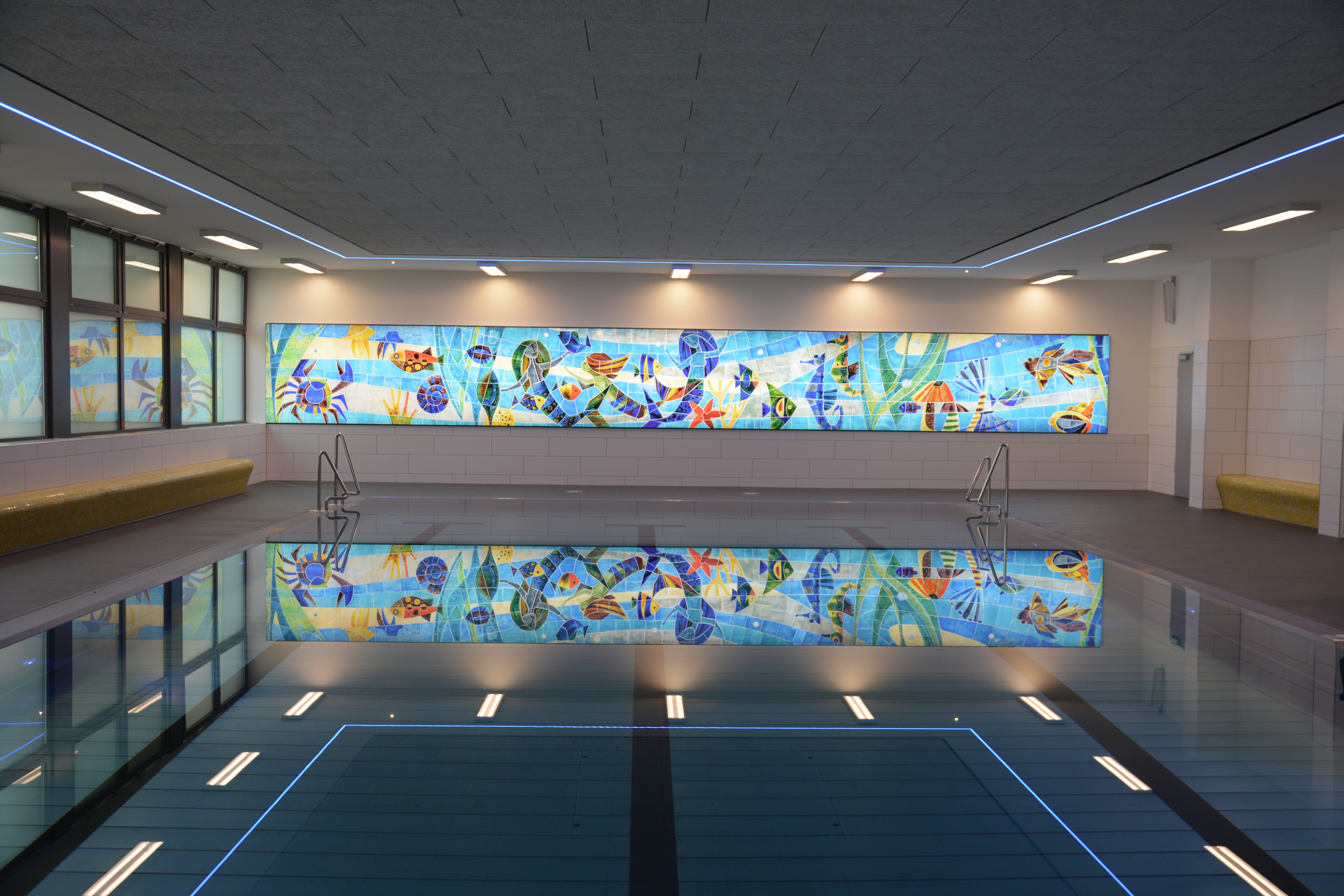 Die Sanierung, die sich über mehrere Monate erstreckte, umfasste unter anderem die Erneuerung der technischen Anlagen, eine energetische Modernisierung sowie Verbesserungen in den Bereichen Sicherheit und Barrierefreiheit. Auch optisch wurde das Bad rundum modernisiert: Neue Umkleiden, freundlich ausgestaltete Aufenthaltsbereiche und ein komplett renoviertes Schwimmbecken warten nun auf die Besucherinnen und Besucher.